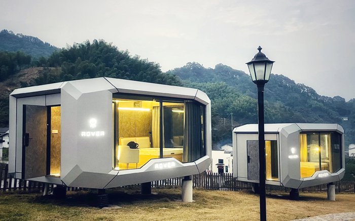 The Roverlc space capsule house features a seismic-resistant steel frame foundation, complemented by aviation-grade aluminum alloy, silicone weatherproof sealant, and vacuum glass for the exterior structure. Inside, it is finished with premium wood-grain lock flooring and a bamboo fiber board ceiling. An integrated intelligent control system throughout the house offers users a modern, smart, and convenient lifestyle.